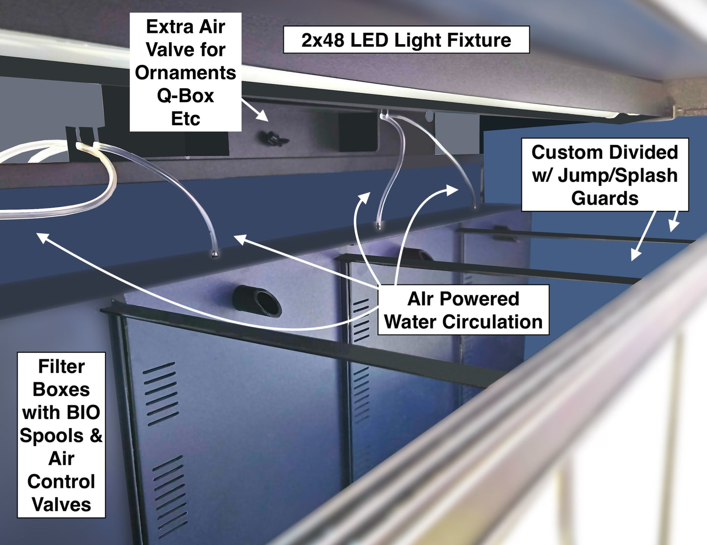 - Each Tier can be customized with up to 5 partitions, allowing for the creation of 1 to 6 individual tanks. (no added cost)