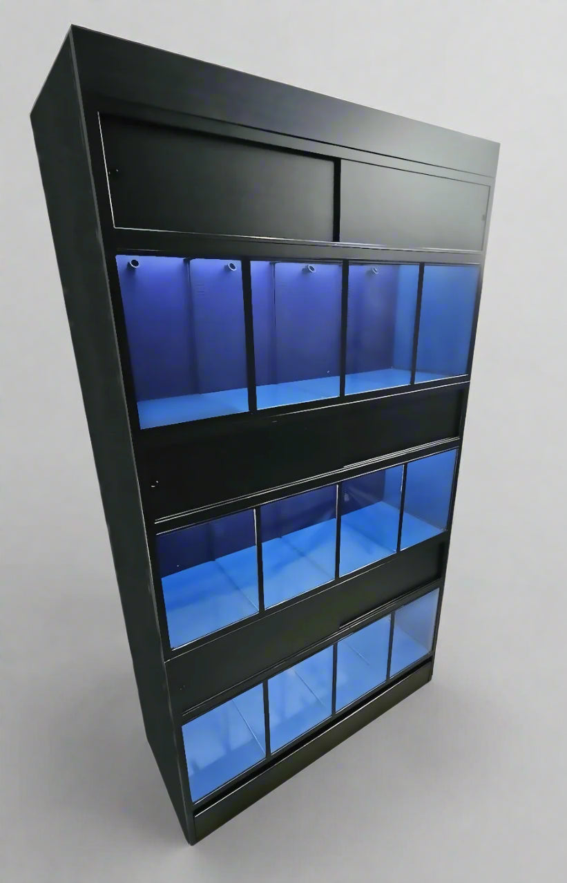 Enhance your freshwater fish and plant display with our premium fish racks, the largest available on the market. Our Fish Racks are designed to accommodate 210 to 300 gallons of water each, while maintaining a compact footprint for optimal fish health and display.