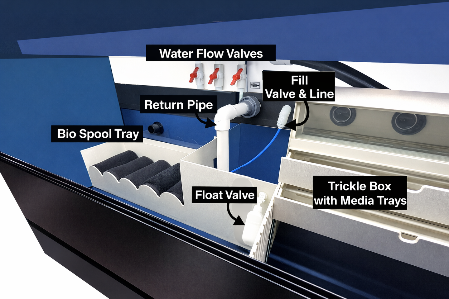 - Bio Spool Tray with (5) 8” Double Layer Foam Spools for optimal bacteria growth